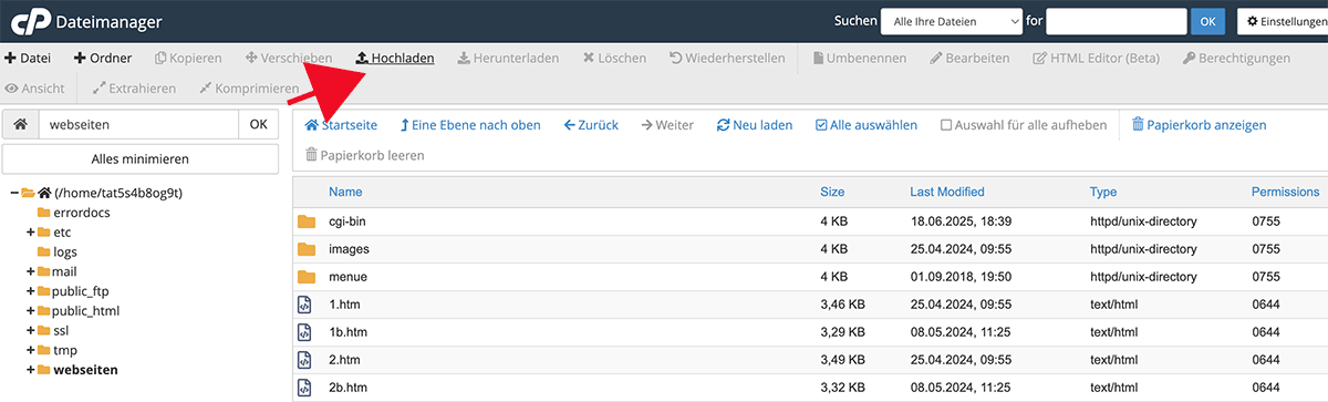 Dateimanager – Dateien hochladen