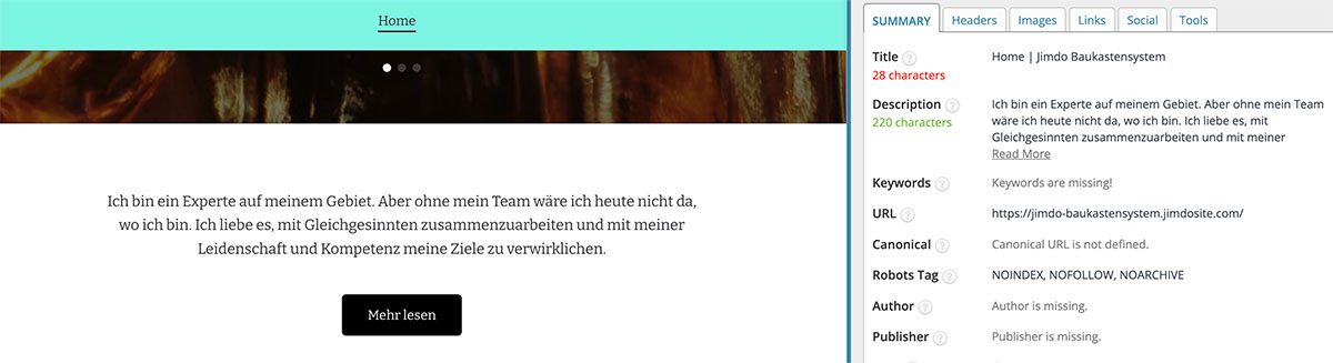 Bei der auf den ersten Blick einfacheren Variante von Jimdo gibt es, gerade für SEO, beträchtliche Einschränkungen, hier kannst du noch mal den Artikel lesen, in dem ich die beiden Webbaukästen vergleiche →