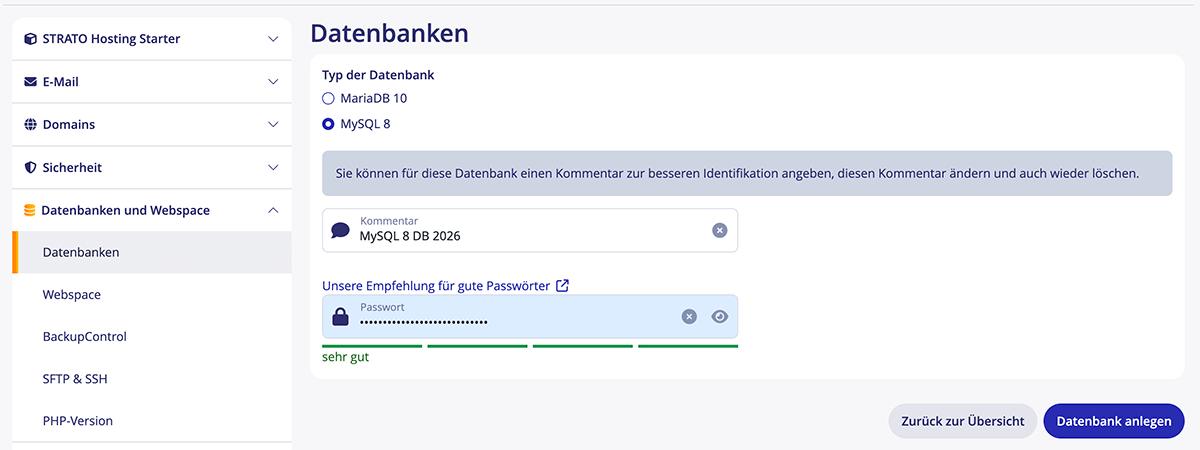 Neue Datenbank bei Strato anlegen