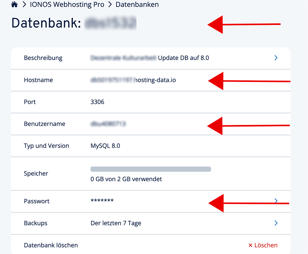 IONOS: Datenbank Informationen
